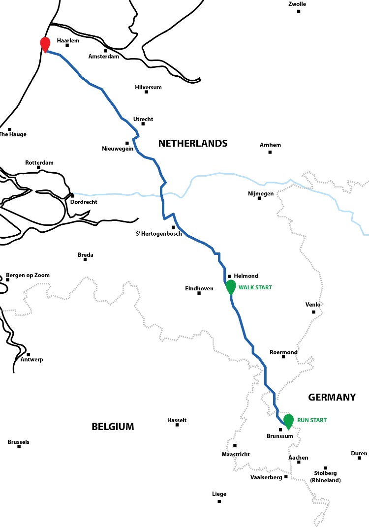 欧洲赛事的赛道将会是Hood To Coast人车接力赛全球系列赛中最平坦和用时最快的。美妙的自然风光与冒险体验将在这景色优美的280公里赛道上等候每个“8人2车“参赛队伍前来探索。比赛将从在荷兰的最高点,位于舒特斯帕克南林堡的森林中开始。在带领参赛选手们游览了荷兰乡村令人惊叹的自然和风景优美的牧场之后,该赛道将指引各位跑者奔赴北海的沙滩。